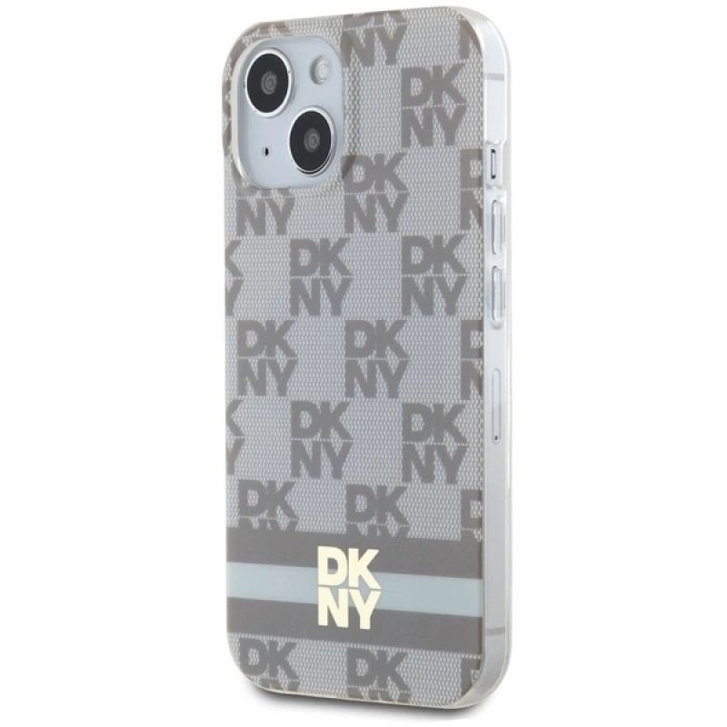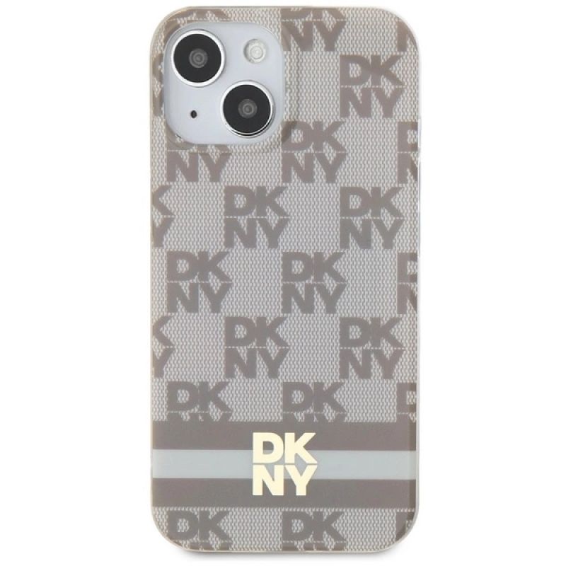 Etui DKNY IML Checkered Mono Pattern & Printed Stripes MagSafe na iPhone 15 / 14 / 13 - beżowe