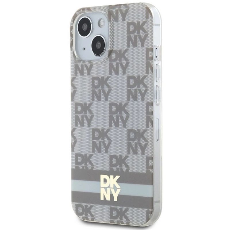 Etui DKNY IML Checkered Mono Pattern & Printed Stripes MagSafe na iPhone 15 Plus / 14 Plus - beżowe