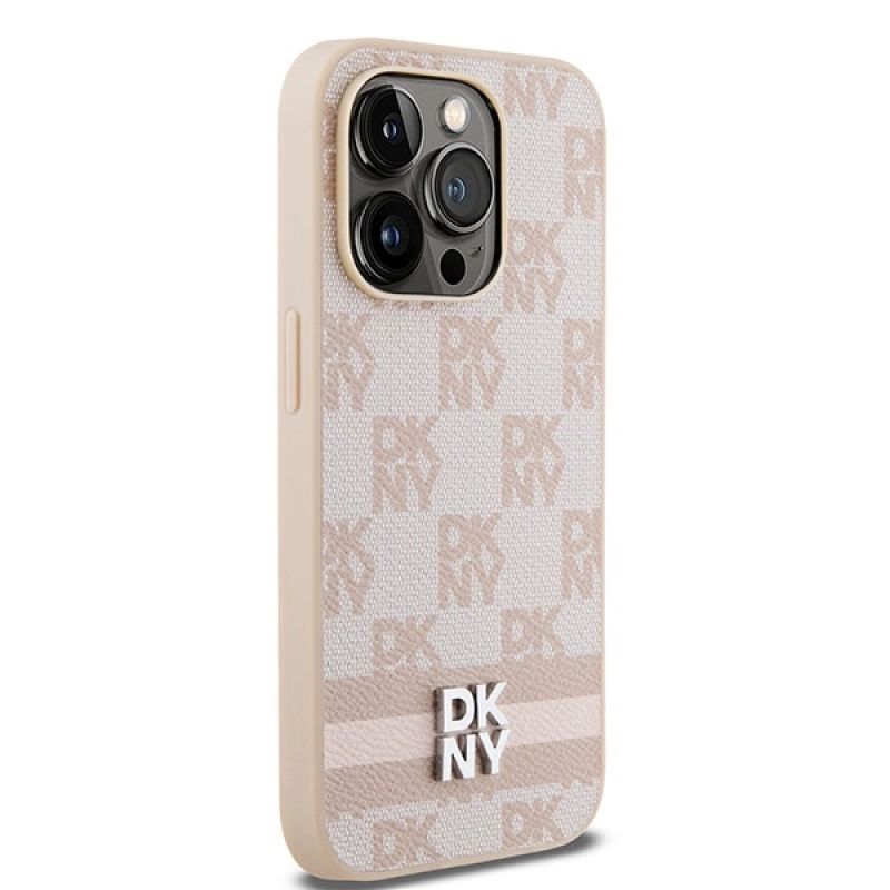 Etui DKNY Leather Checkered Mono Pattern & Printed Stripes na iPhone 14 Pro - różowe
