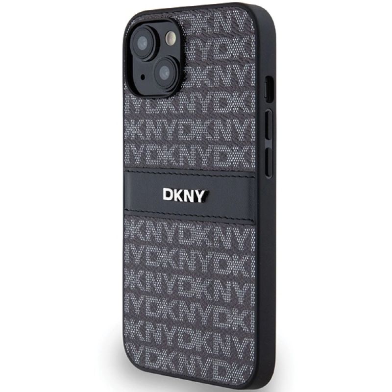 Etui DKNY Leather Mono Stripe & Metal Logo na iPhone 15 / 14 / 13 - czarne