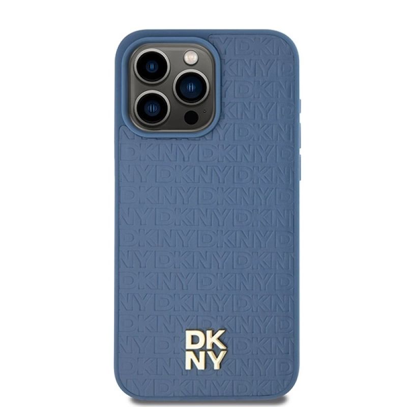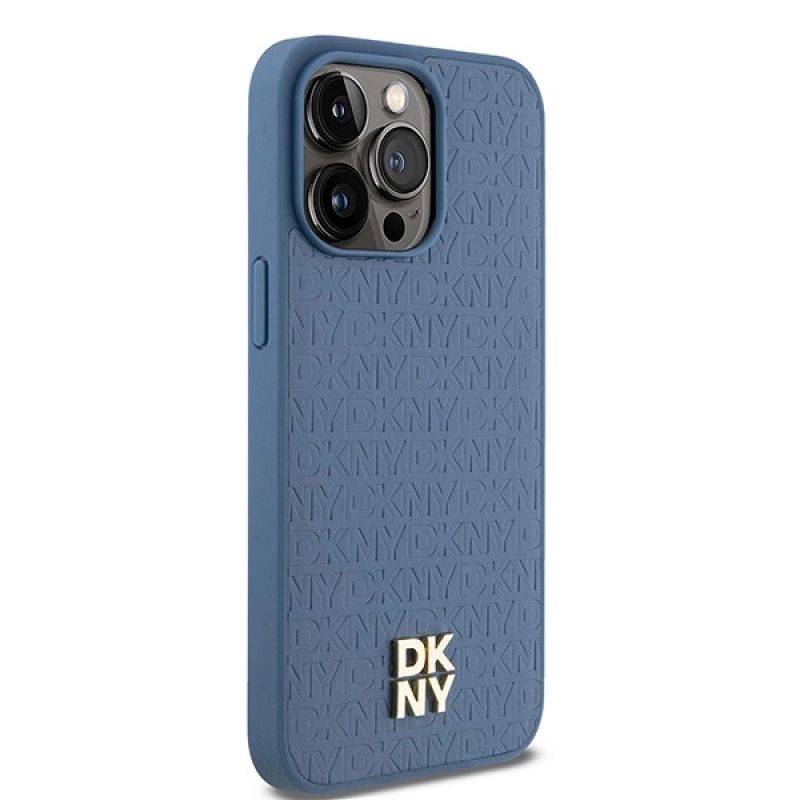 Etui DKNY Leather Monogram Pattern Metal Logo MagSafe na iPhone 15 Pro Max - niebieskie