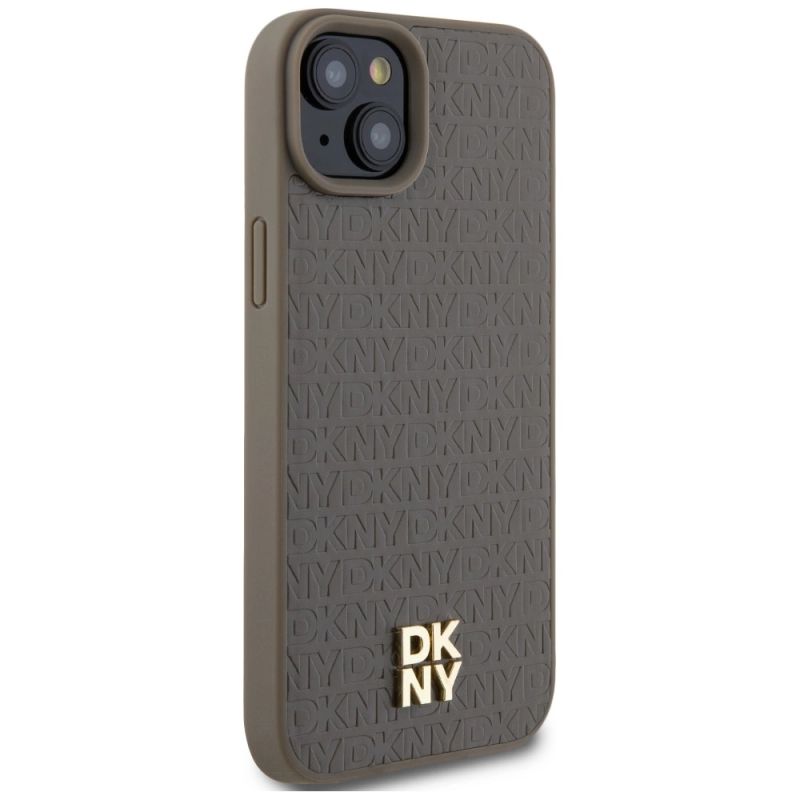 Etui DKNY Leather Pattern Metal Logo MagSafe na iPhone 15 / 14 / 13 - brązowe