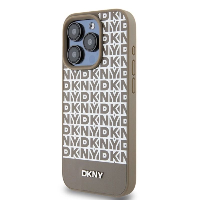 Etui DKNY Leather Printed Pattern Metal Logo MagSafe na iPhone 15 Pro - brązowe