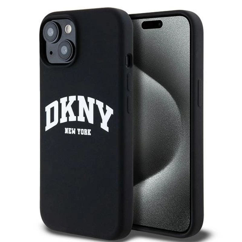 Etui DKNY Liquid Silicone White Printed Logo MagSafe na iPhone 14 / 15 / 13 - czarne