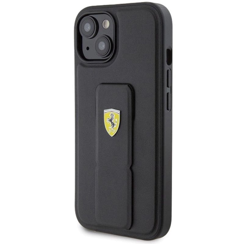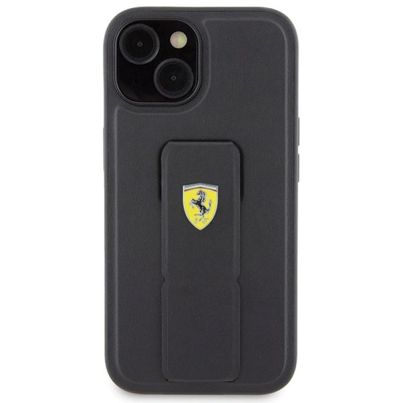 Etui Ferrari Grip Stand Metal Logo na iPhone 15 - czarne