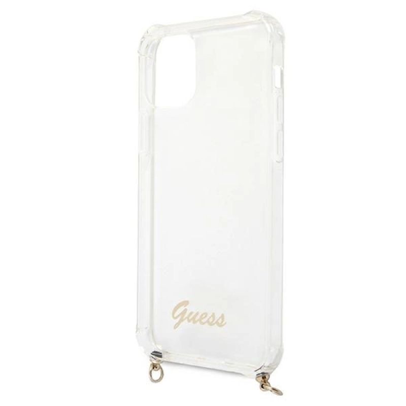Etui Guess 4G Brown Strap Gold Chain na iPhone 12 / iPhone 12 Pro - przezroczyste