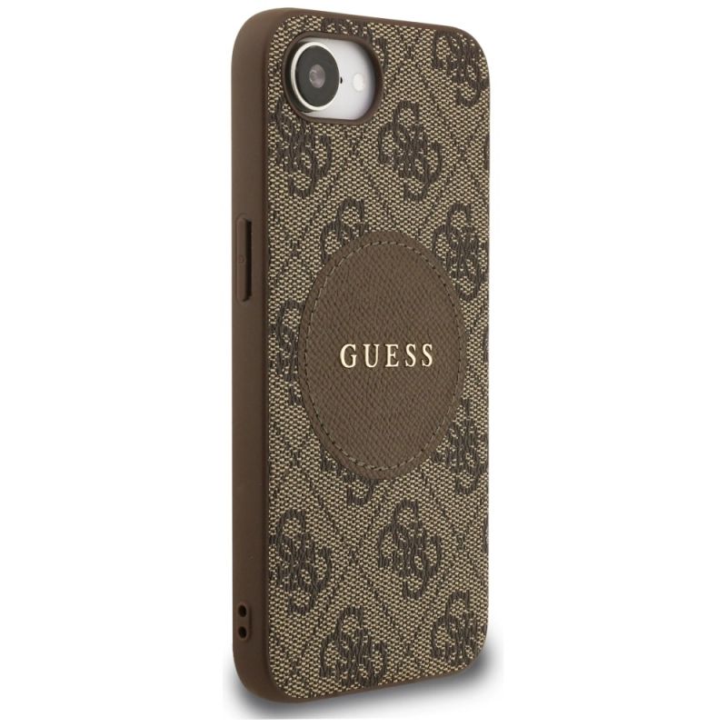 Etui Guess 4G Circle Classic Logo MagSafe na iPhone 16e - brązowe