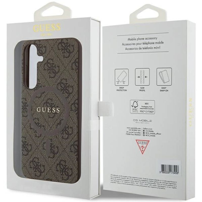 Etui Guess 4G Collection Leather Metal Logo MagSafe na Samsung Galaxy S24+ - brązowe