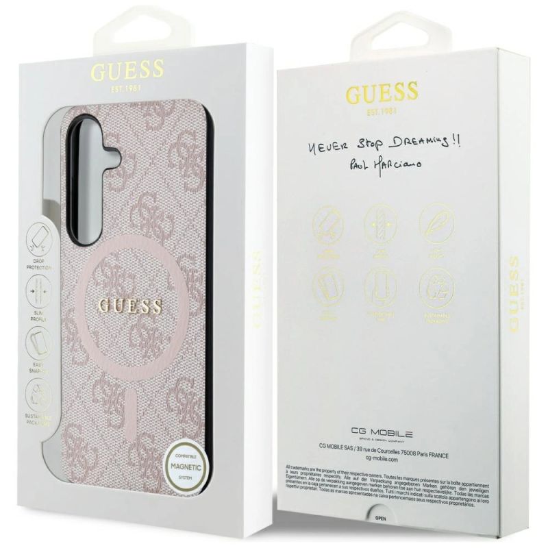 Etui Guess 4G Collection Leather Metal Logo MagSafe na Samsung Galaxy S24 - różowe