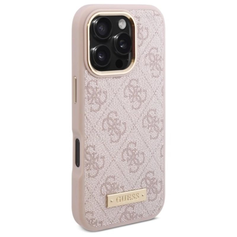 Etui Guess 4G Logo Plate MagSafe na iPhone 16 Pro Max - różowe