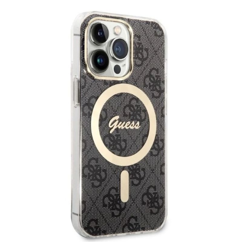 Etui Guess 4G Print MagSafe na iPhone 13 Pro + ładowarka indukcyjna - czarne