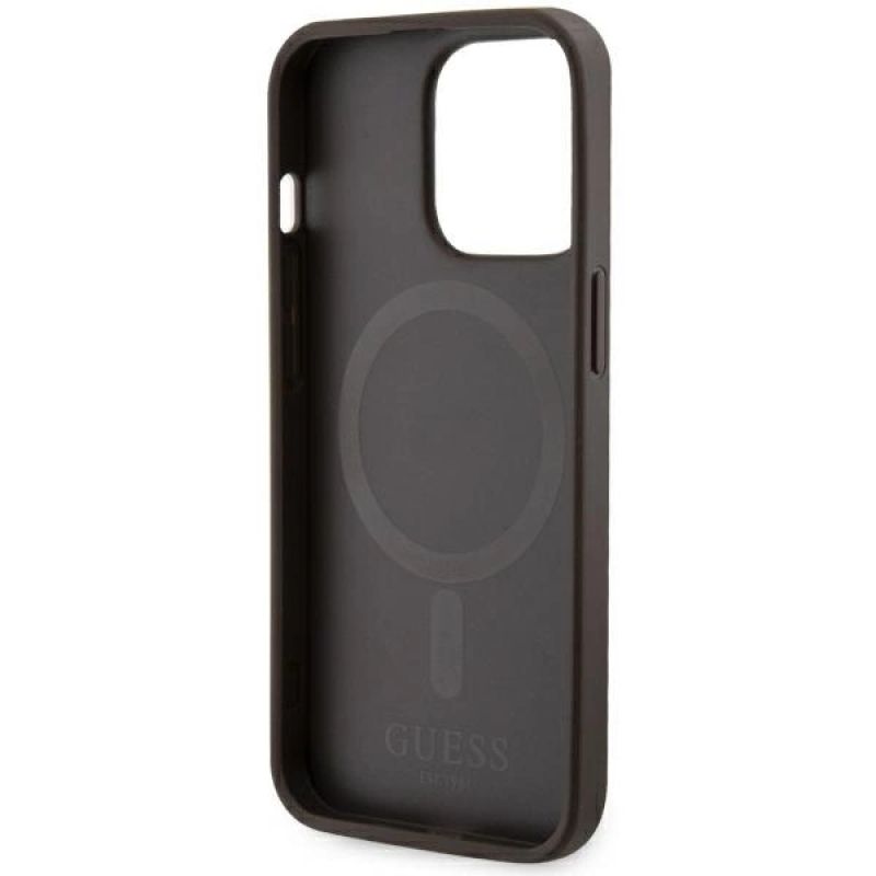 Etui Guess 4G Printed Stripes MagSafe na iPhone 13 Pro / iPhone 13 - brązowe