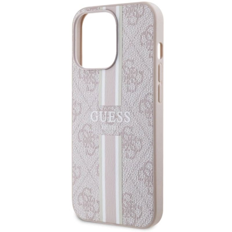 Etui Guess 4G Printed Stripes MagSafe na iPhone 13 Pro / iPhone 13 - różowe