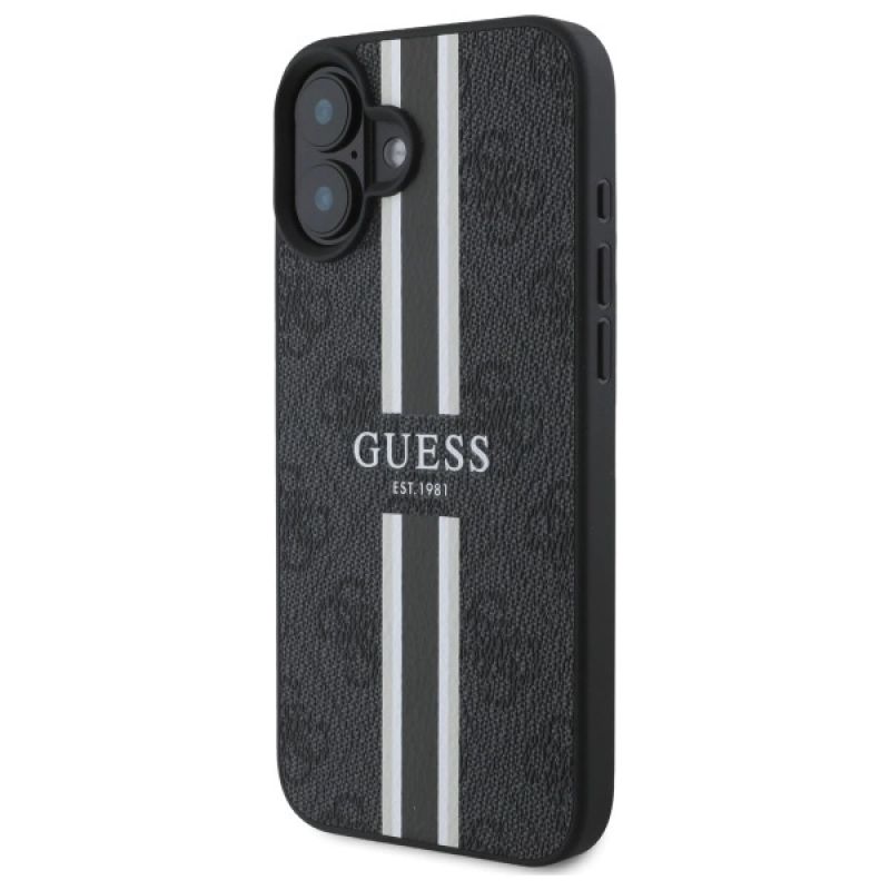 Etui Guess 4G Printed Stripes MagSafe na iPhone 16 - czarne