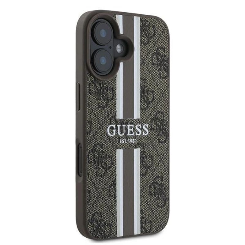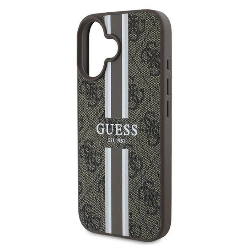 Etui Guess 4G Printed Stripes MagSafe na iPhone 16 Plus - brązowe