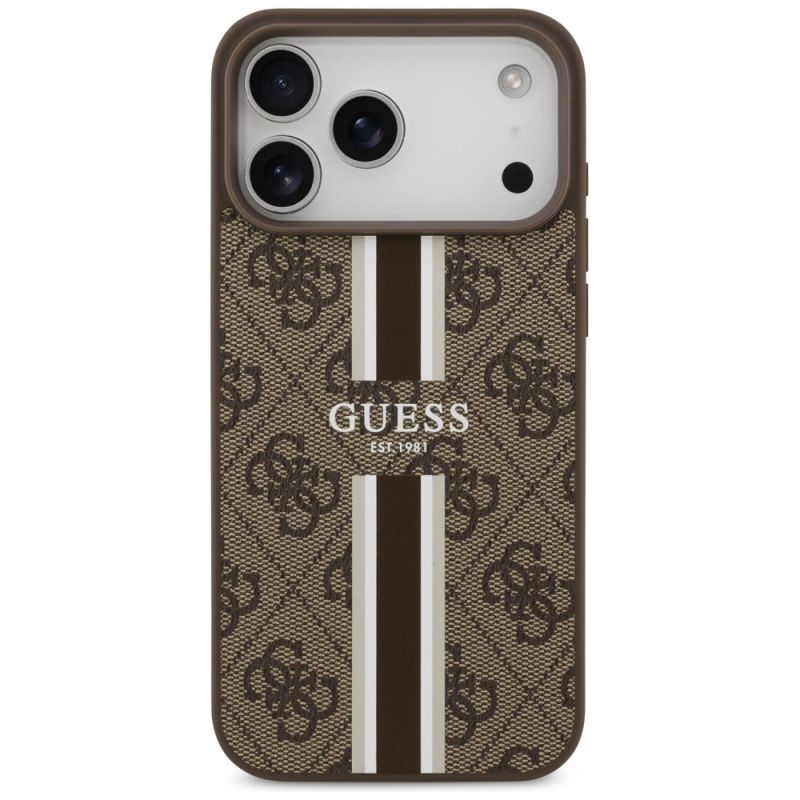 Etui Guess 4G Printed Stripes MagSafe na iPhone 17 Pro Max - brązowe