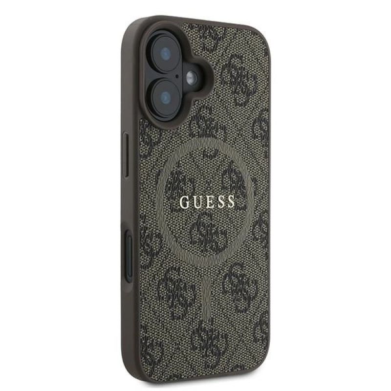 Etui Guess 4G Ring Classic Logo MagSafe na iPhone 16 Plus - brązowe