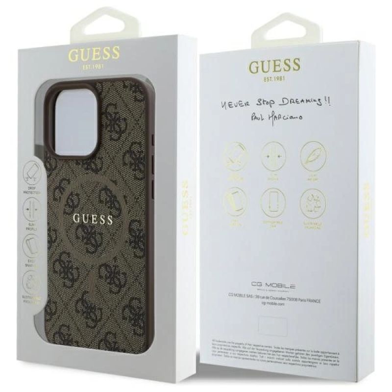 Etui Guess 4G Ring Classic Logo MagSafe na iPhone 16 Pro Max - brązowe