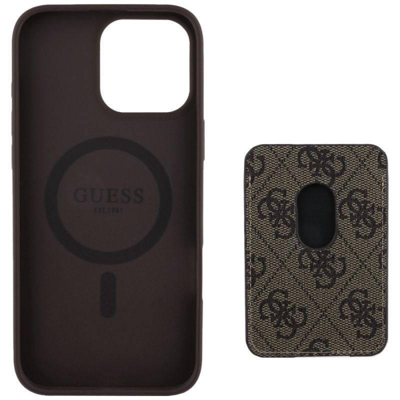 Etui Guess 4G Stripes z portfelem Magsafe do iPhone 16 Pro Max brązowy