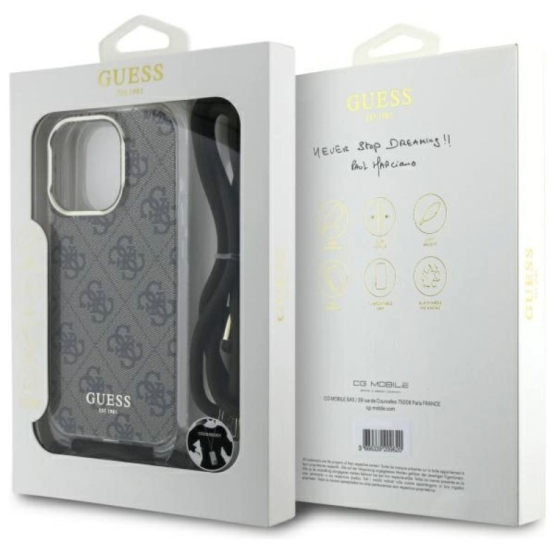 Etui Guess Crossbody Cord 4G Print na iPhone 16 Pro Max - brązowe