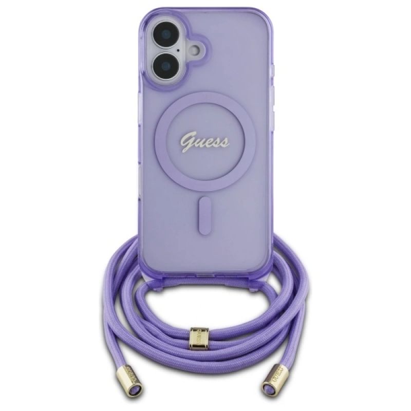 Etui Guess Crossbody Cord Script MagSafe na iPhone 16 - fioletowe