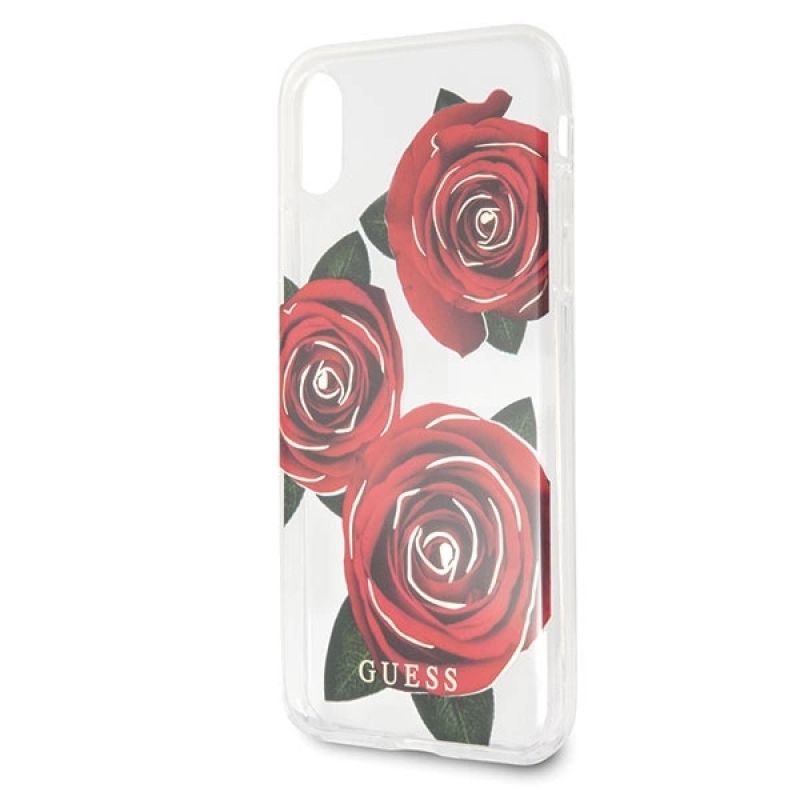 Etui Guess Flower Desire Red Rose na iPhone X - przezroczyste