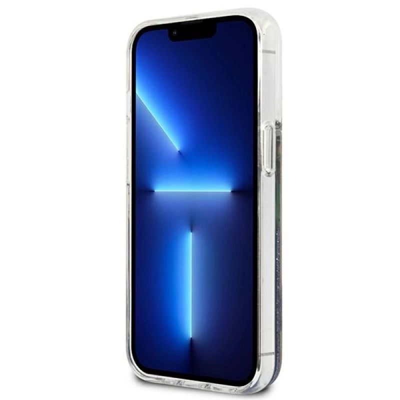 Etui Guess Flower Liquid Glitter na iPhone 13 mini - niebieskie