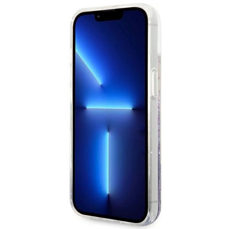 Etui Guess Flower Liquid Glitter na iPhone 14 Plus - fioletowe