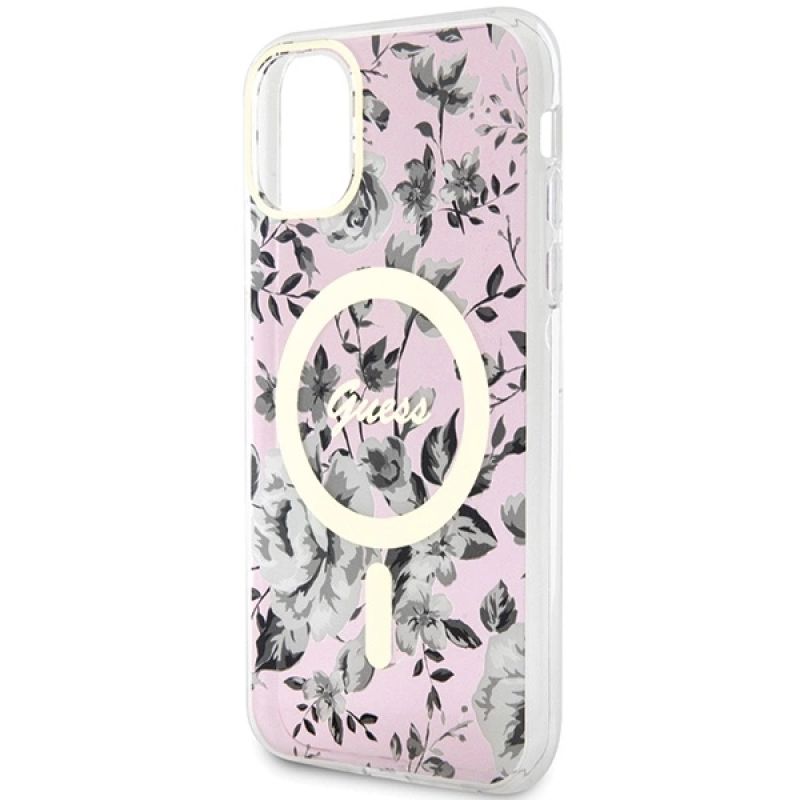 Etui Guess Flower MagSafe na iPhone 11 / Xr - różowe