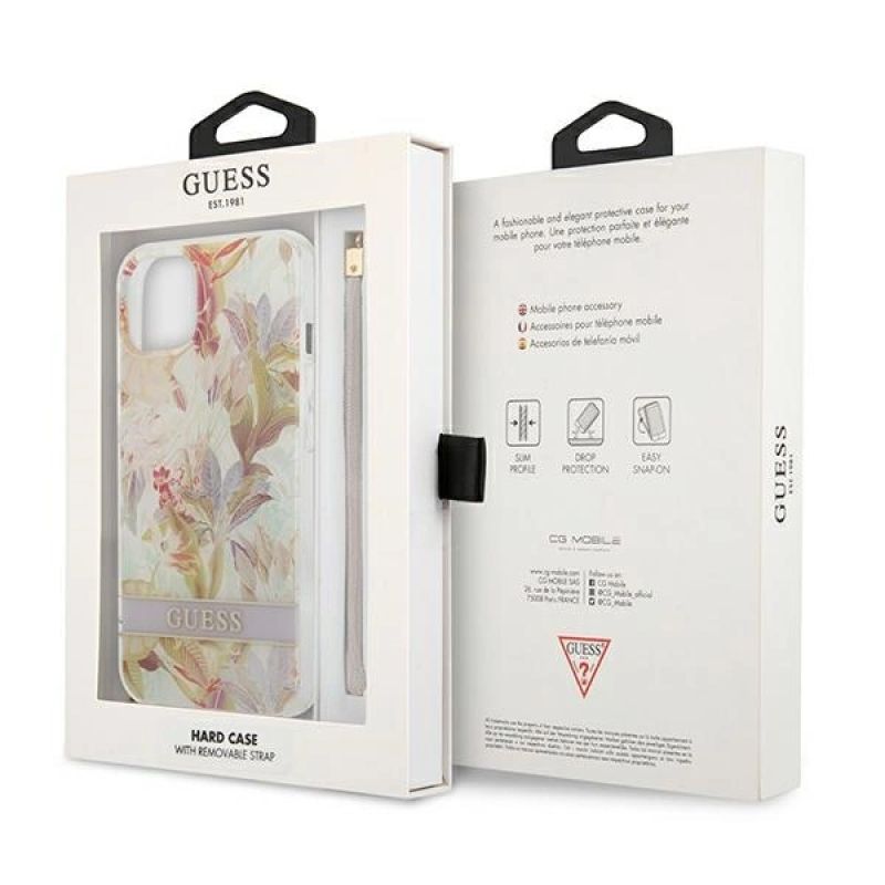 Etui Guess Flower Strap na iPhone 13 mini - fioletowe