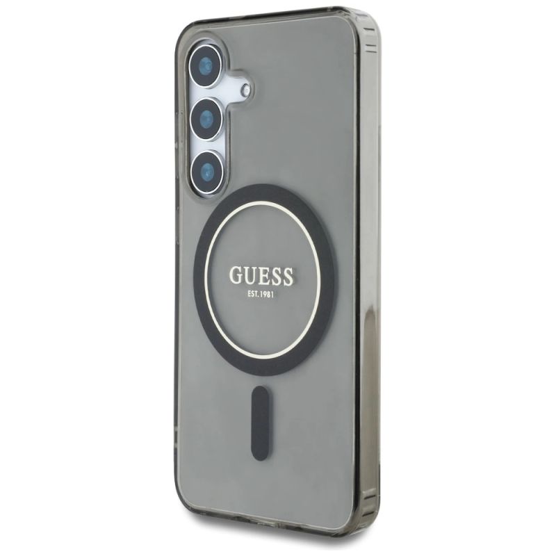 Etui Guess Glitter Circle Classic Logo MagSafe do Samsung Galaxy S25 czarny