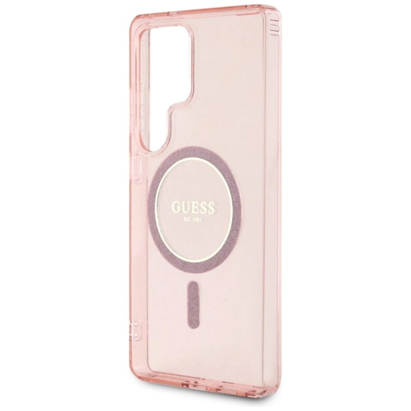 Etui Guess Glitter Circle Classic Logo MagSafe do Samsung Galaxy S25 Ultra różowy