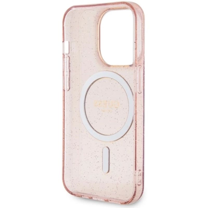 Etui Guess Glitter Gold MagSafe na iPhone 14 Pro - różowe