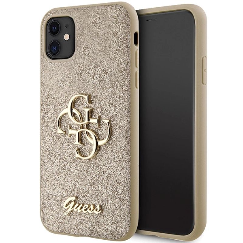 Etui Guess Glitter Script Big 4G na iPhone 11 / Xr - złote