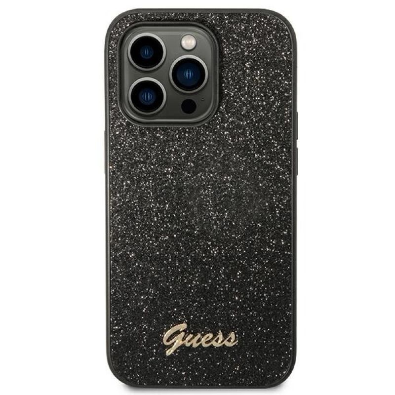 Etui Guess Glitter Script na iPhone 14 Pro - czarne