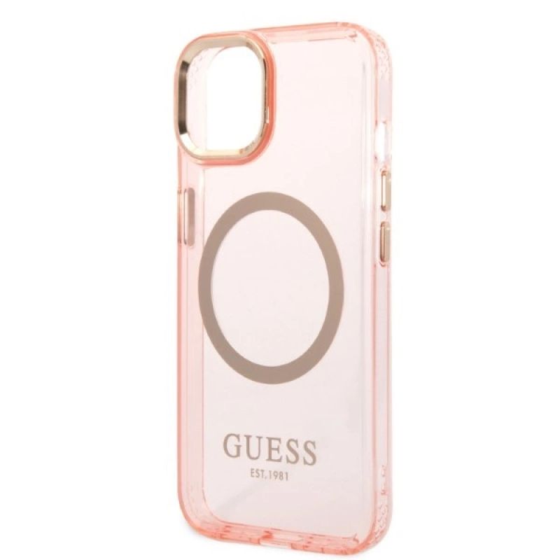 Etui Guess Gold Outline Translucent MagSafe na iPhone 14 - różowe