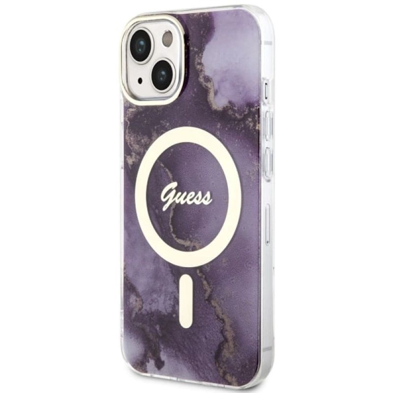 Etui Guess Golden Marble MagSafe na iPhone 14 - purpurowe