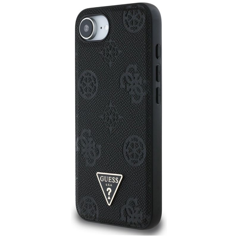 Etui Guess Grained Hot Stamp Peony Triangle Logo MagSafe na iPhone 16e - czarne