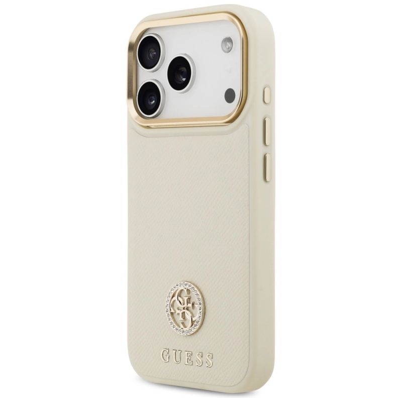 Etui Guess Grained Strass Logo MagSafe na iPhone 17 Pro - beżowe