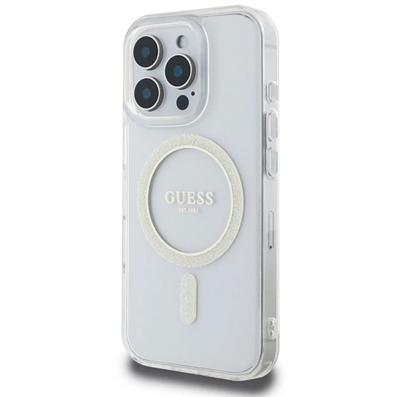 Etui Guess IML Glitter Circle MagSafe na iPhone 16 Pro Max - przezroczyste