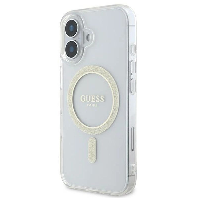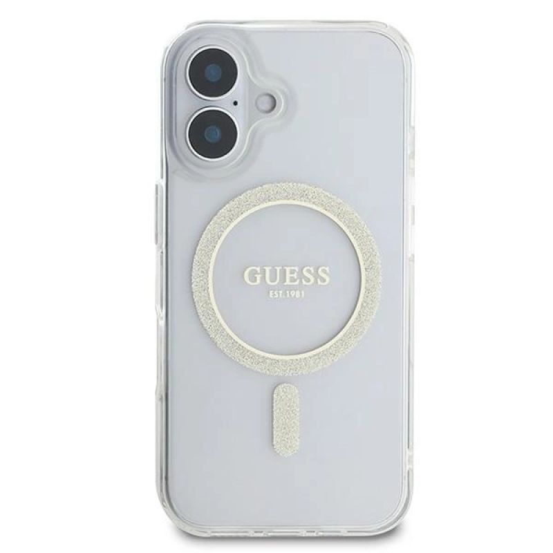 Etui Guess IML Glitter Circle MagSafe na iPhone 16 - przezroczyste