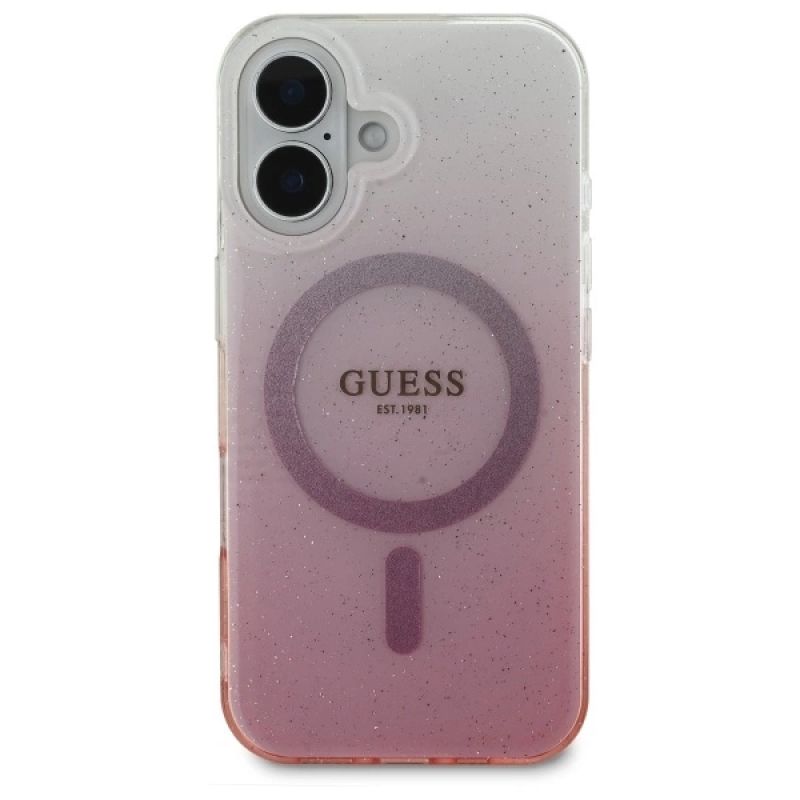 Etui Guess IML Glitter Gradient MagSafe na iPhone 16 - różowe