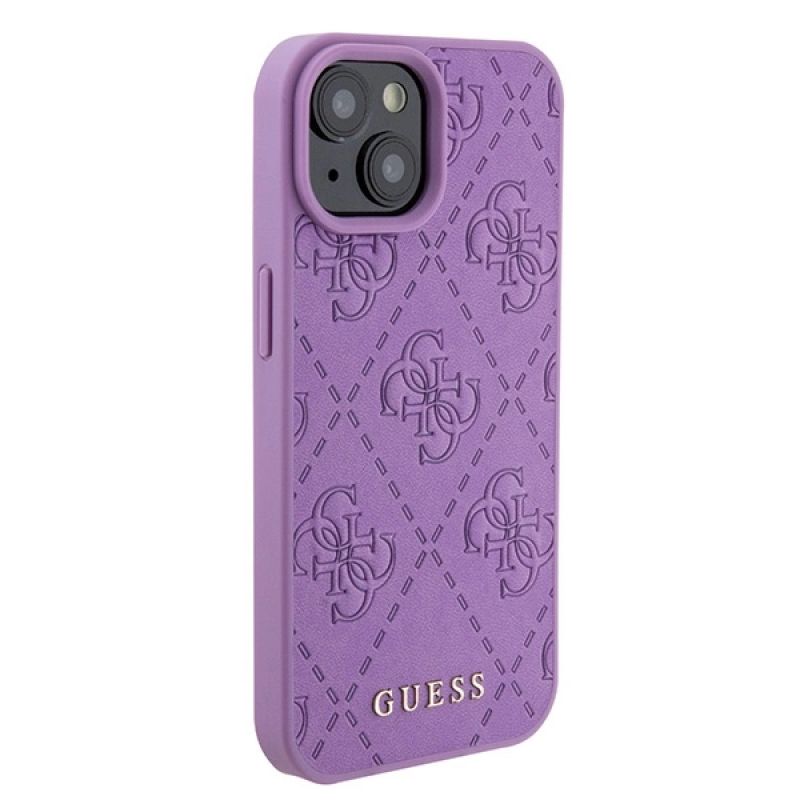 Etui Guess Leather 4G Stamped do iPhone 15 - fioletowe