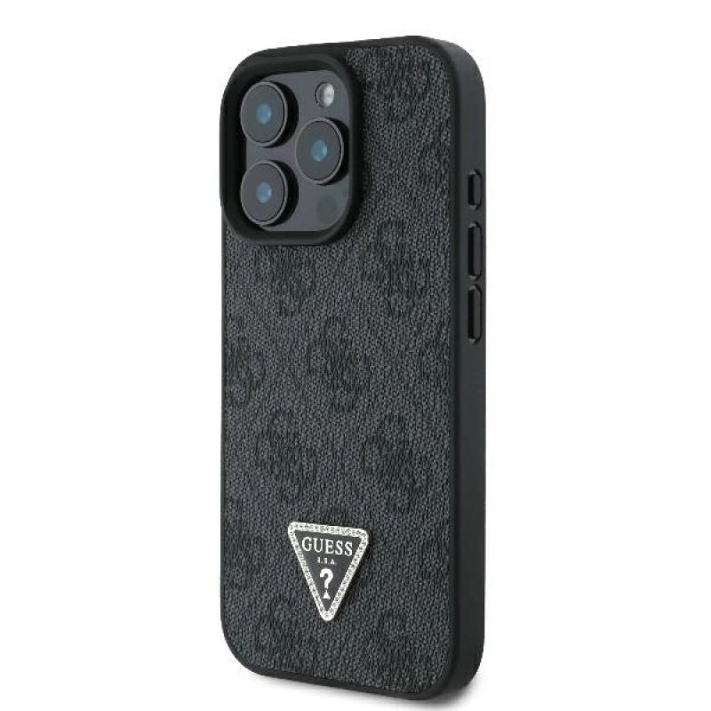 Etui Guess Leather 4G Triangle Strass MagSafe na iPhone 16 Pro Max - czarne