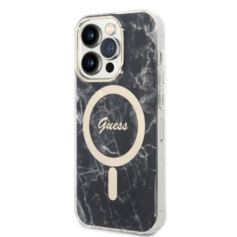 Etui Guess Marble MagSafe na iPhone 14 Pro + ładowarka indukcyjna - czarne