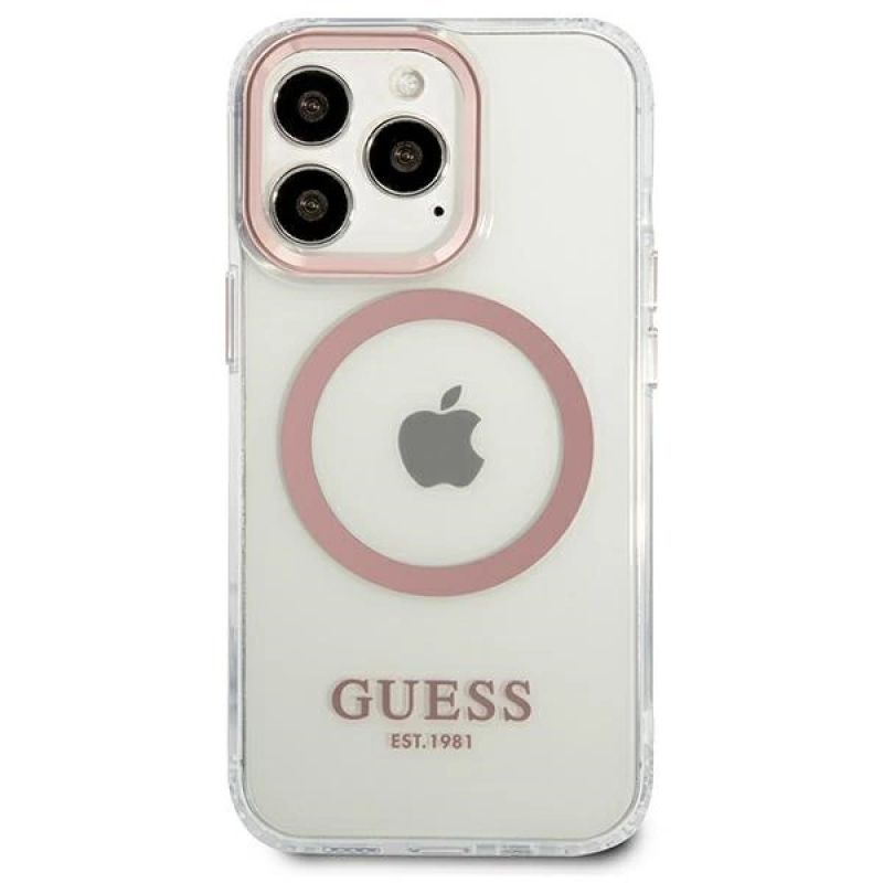 Etui Guess Metal Outline MagSafe na iPhone 13 Pro / iPhone 13 - różowe