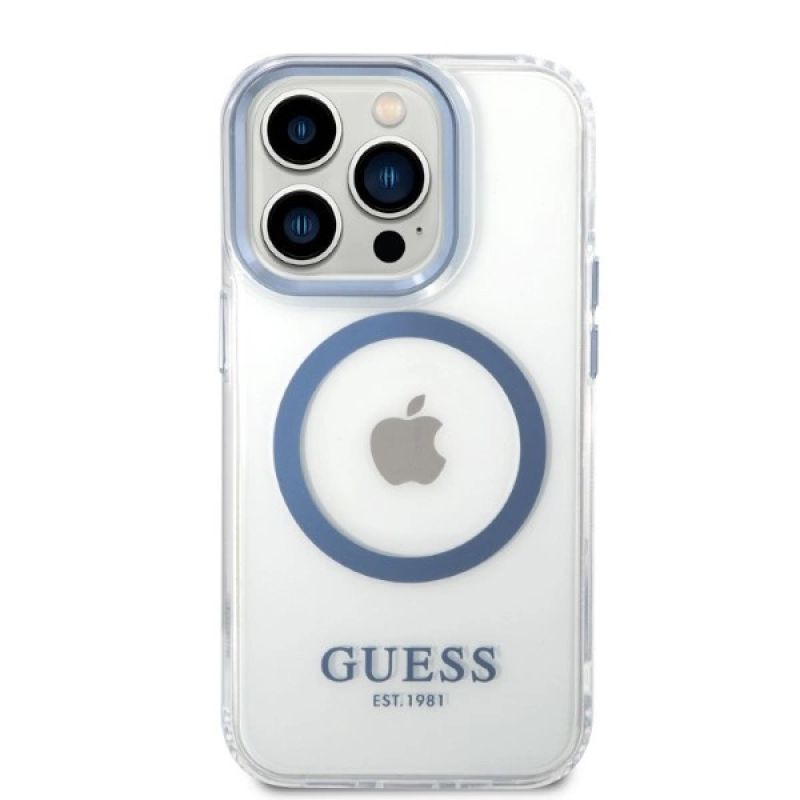 Etui Guess Metal Outline Magsafe na iPhone 14 Pro Max - niebieskie