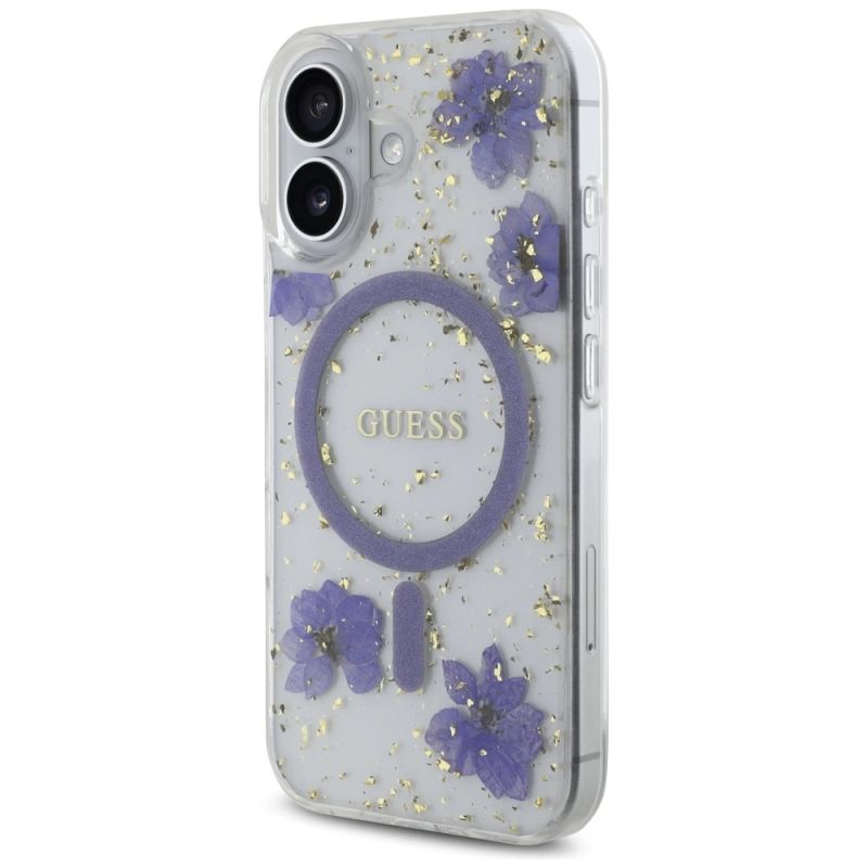 Kolekcja Guess Resin Flowers Glitter MagSafe Typ Hardcase Materiał TPU / PC Kolor Fioletowy Kompatybilność iPhone 16 6.1"| Nazwa | Szczegóły |
