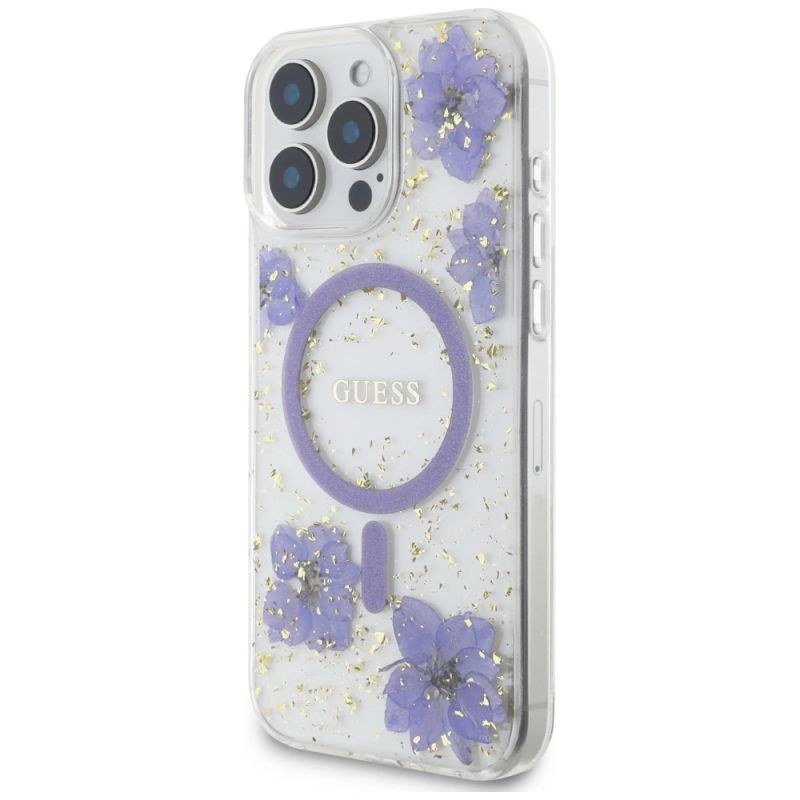 Etui Guess Resin Flowers MagSafe na iPhone 16 Pro - fioletowe