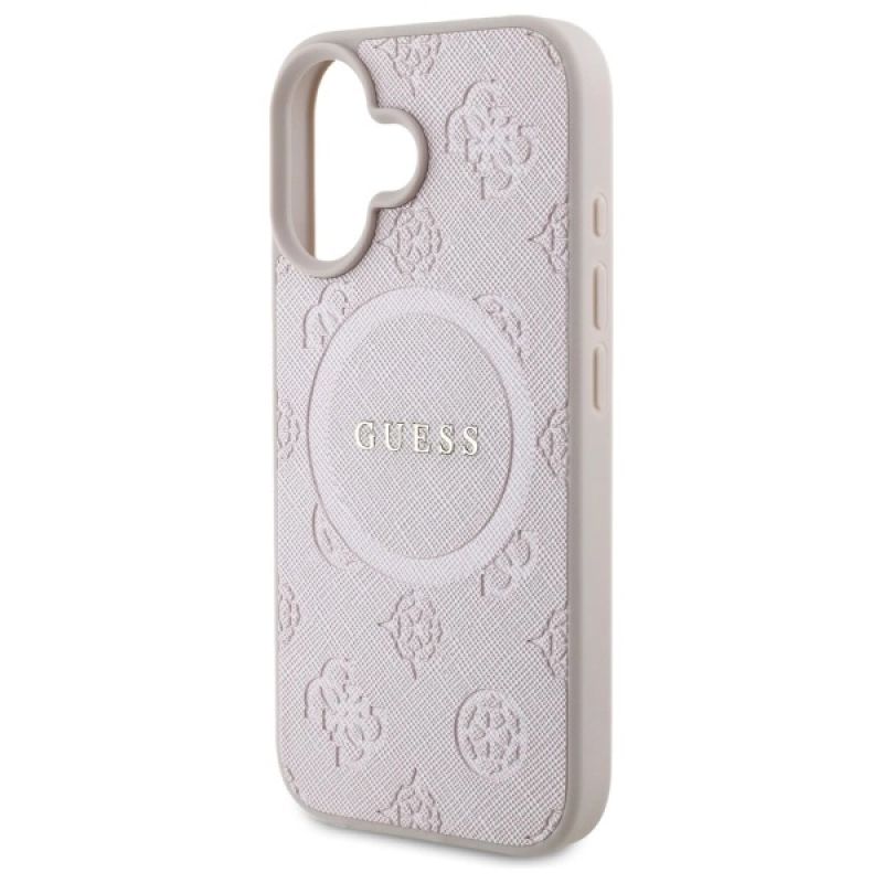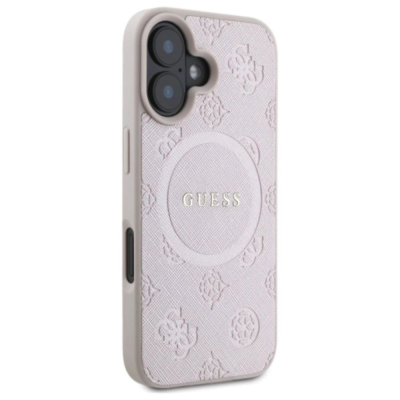 Etui Guess Saffiano Peony Classic Logo MagSafe na iPhone 16 - różowe